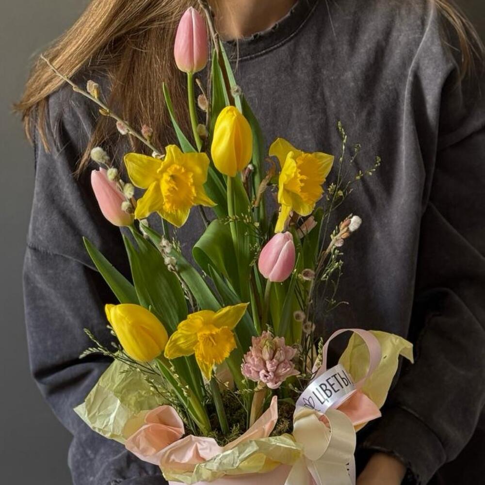 2. Символика: Тюльпаны символизируют весну и новые начинания, нарциссы — обновление и надежду, а гиацинты — радость и гармонию. Такой подарок передает положительные эмоции и настроение.